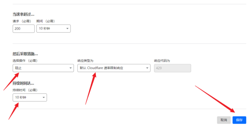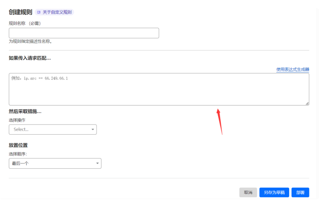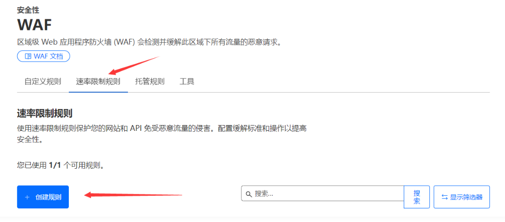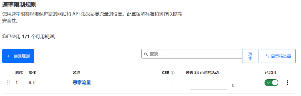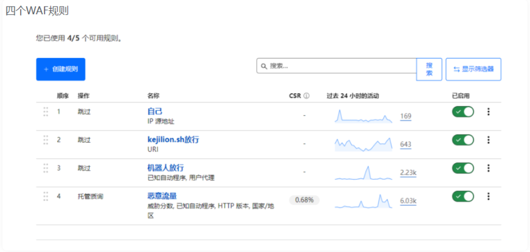 记得在DNS选项,开启黄色小云朵。只有开启CDN了,后续防御规则才会生效。